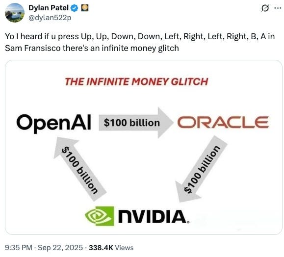 Concurrently, Oracle announced it had secured contracts worth hundreds of billions of dollars to deliver cloud computing services to OpenAI and several other major clients. This news caused its stock to spike 30% (a bewildering number for a half-trillion dollar company) and elevated co-founder Larry Ellison into contention for the world’s wealthiest individual. Debt-rating firm Moody’s—amongst other analysts—wondered how OpenAI would procure the cash to cover the contracts. Completing the cycle of insider dealing, then, is Nvidia’s aforementioned $100B promise.