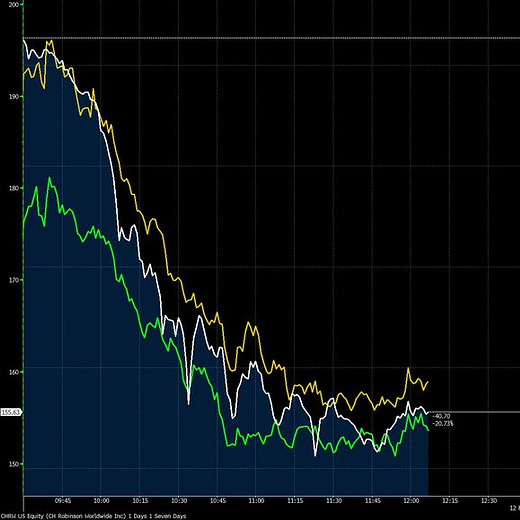 $400B of SaaS enterprise value evaporated this month. ServiceNow is down nearly 50% from last year’s peak, CRM is down 40%, and even MSFT approached a 30% drawdown. Nowhere is safe: even rumors of evidence of “AI eating X” are triggering sell-offs. A penny stock that previously sold music jukeboxes and announced a freight product caused a double-digit sell-off in logistics companies.